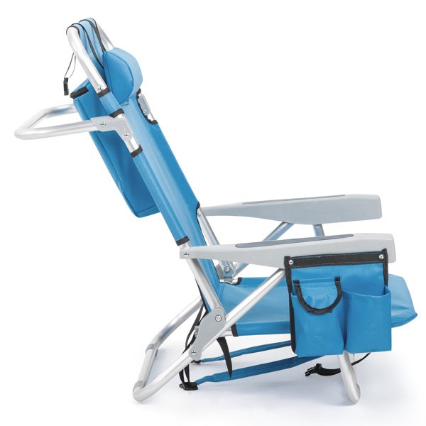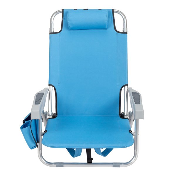 Get comfortable with this Folding beach Chair. It is an ideal solution for sitting and relaxing in comfort during outdoor activities. It is also a must-have for a sporting event, a picnic, a camping trip or even just to the backyard. The aluminum frame is not only light-weight, but also offers even greater sturdiness and stability to make it stand up to various conditions. In addition, the adjustable back with 5 positions to create better sitting feeling, and the extra storage space such as pouches on the back and side cup holder allow you to keeps the necessities right by your side. The beach chair is light-weight and easy to move so that it fits easily inside most vehicles for fast transport wherever you need.
