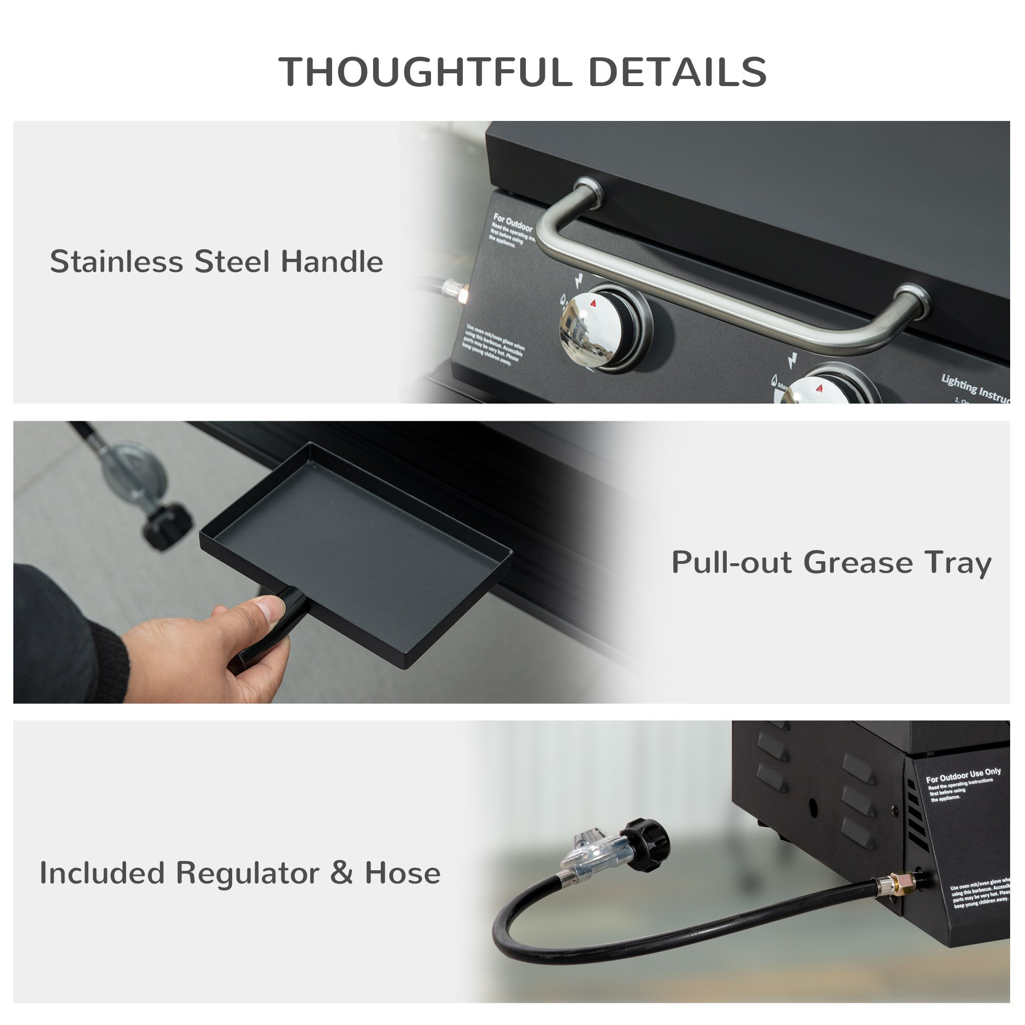Hassle-free Grease Cleanup: The pull-out grease tray catches extra oil, so you don't have to handle it directly, making it easy to clean after barbecuing.